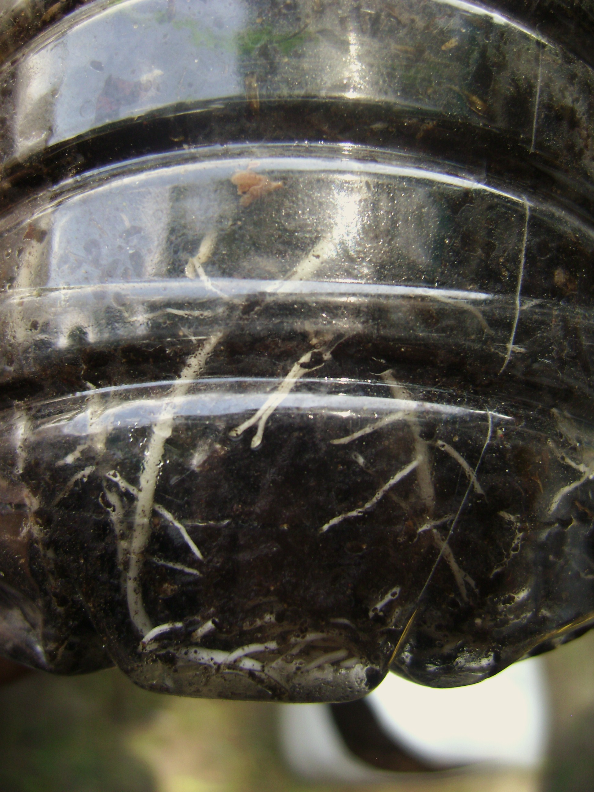 De manera que en varios días pasados realicé el trasplante de la mata que aparece en las imágenes anteriores. El truco está en permitir que la planta tenga al menos dos pares de hojas y un sistema de raíces sanas. Los días recomendables para la técnica del trasplante van del cuarto menguante a la luna nueva. Es buena idea preparar dos noches antes del trasplante el suelo en donde crecerá la mata, en este caso un recipiente HDPE con volumen de un galón, mismo que se utiliza para despachar eso que llaman ahora lache. El suelo se prepara en estratos, como les mencioné en la entrada anterior, y se humedece con un vaso de agua aplicado con un sprayer. En cuanto a lo otro, la planta en el germinador, yo recomiendo que una noche anterior al trasplante se humedezca el suelo del germinador, apenas con un par de alientos del sprayer. Al día siguiente, muy temprano en la mañana, realizar el trasplante. La técnica consiste en volcar el germinador, de manera que la planta salga con la mayor cantidad posible de tierra en sus raíces y trasplantar, justo a la misma altura entre el suelo y el tallo.