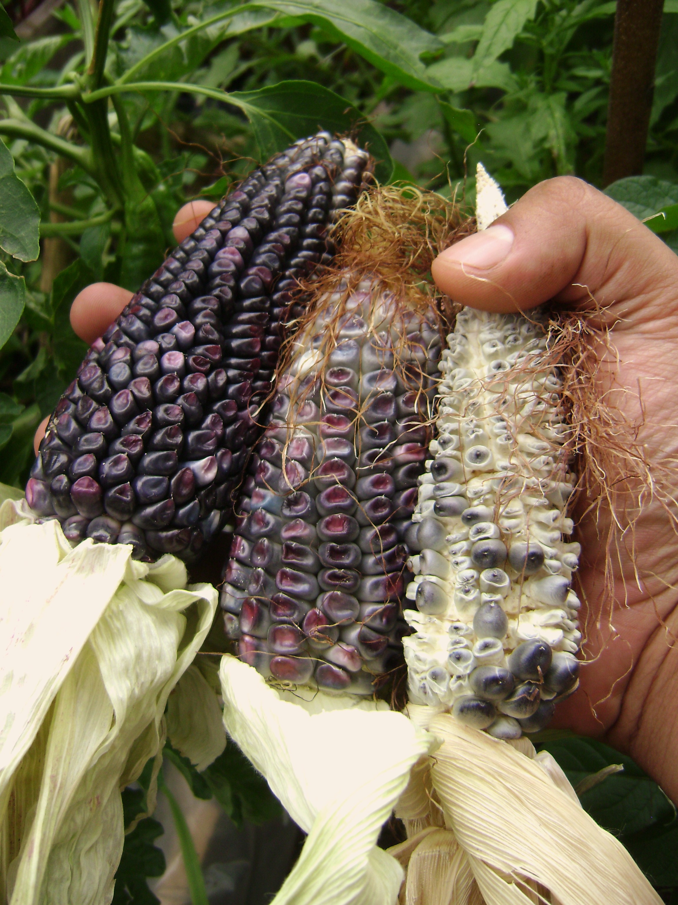 El huauzontle (Chenopodium berlanderi), amaranto (Amaranthus hypochondriacus) y la chía (Salvia hispanica), resulta que fueron tres de los cereales con mayor importancia de cultivo en el mundo anterior a ese evento que llaman descubrimiento de América. Cada variedad logró reproducirse en la milpa de azotea y ahora, con esta luna de cosechas, ha llegado el momento de comenzar a pellizcar sus frutos. Imaginen tener la dicha de cosechar sus propios triunfos, ahora pueden realizarlo, plasmar sus ideas en el lienzo de una sementera, manosear sus asperezas, olisquear sus almizcles, masticar sus salados sabores, chupar sus dulces jugos, fumar sus psicoactivos humos. En cuanto al maíz, primer lugar en importancia de cultivos para mucha gente, solo les puedo decir que nunca se deben de meter a todas las gallinas donde se ponen los huevos, siempre cuenten con los cuatro ases bajo la manga. Ahí les dejo una imagen, la semilla de maíz criollo, en el extremo derecho y ya seca, a falta de lluvias de Junio y Julio en el Anawak, se mira contrahecha, mientras que sus hijxs híbridos muestran la claridad de sus semillas que hace parecer a la mazorca como si fuera un frutsi de uva.